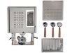 | Handgefertigte Griffe des Handhebels, der Kippventile und der Siebträger aus amerikanischen Nussbaum | |