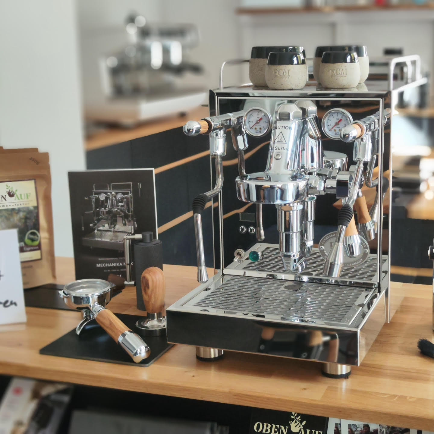 Unser Showroom bietet eine kuratierte Auswahl an Maschinen führender Marken wie ECM, Rocket Espresso, Nivona, Profitec, Lelit, La Marzocco und vielen mehr. Vom Einsteigermodell bis zur High-End-Gastro-Maschine – bei uns können Sie sich vor Ort ein Bild von Technik, Bedienung und Espressoqualität machen.