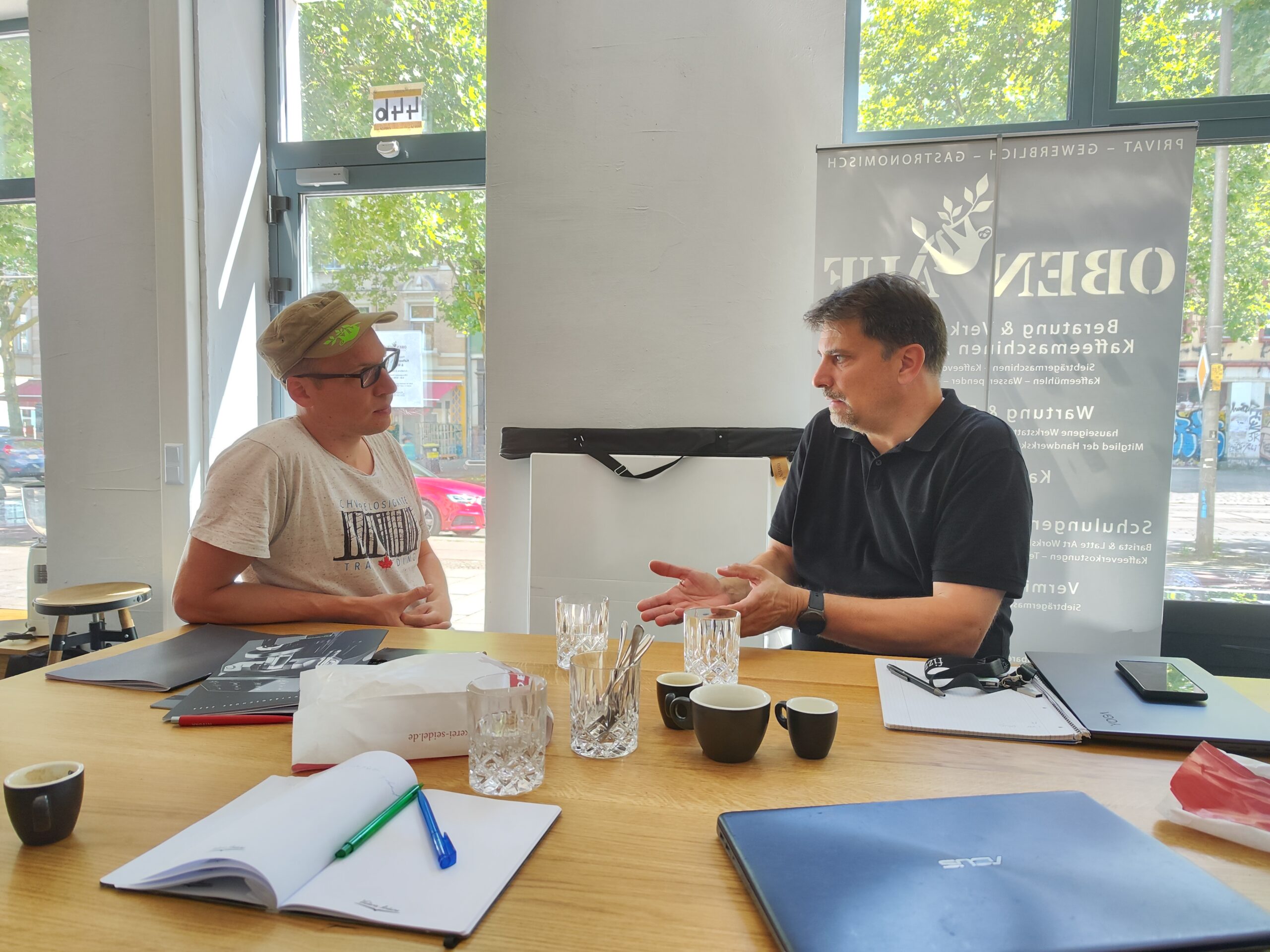 Im Frühjahr 2020 haben wir Anne und Jens in Leipzig eine gläserne Rösterei eröffnet. So entstand das Ladengeschäft der Obenauf Kaffeemanufaktur auf der Karl-Heine-Straße.